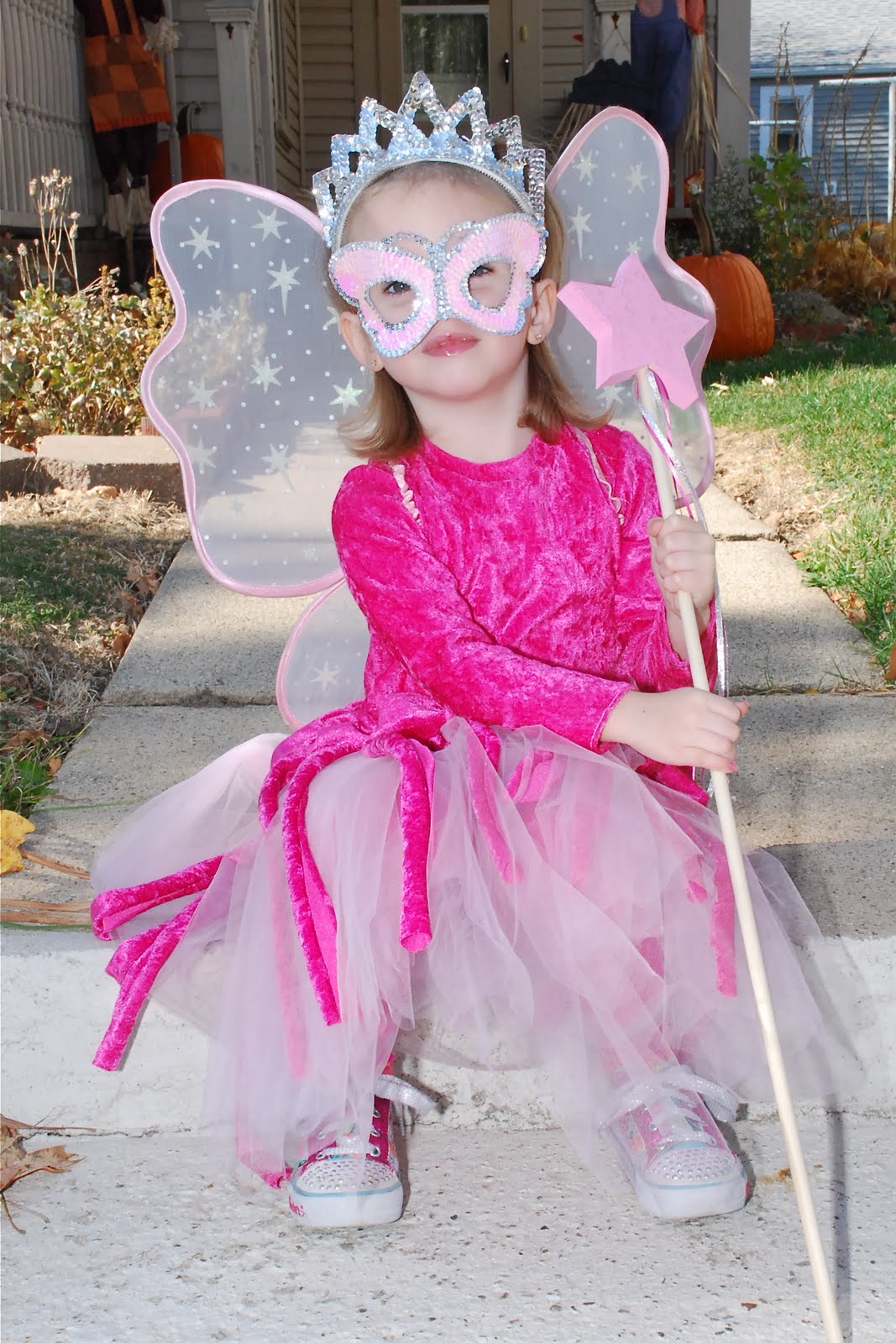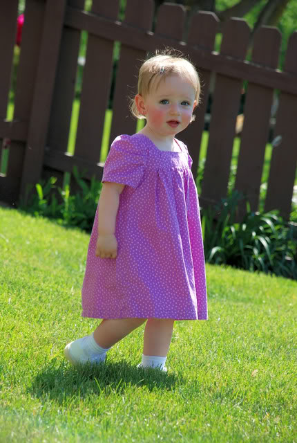 Here she is over a year later when the dress actually fit her. Five minutes after taking this picture, we went inside and she took a pair of scissors and cut a big hole in the front of the dress... :(